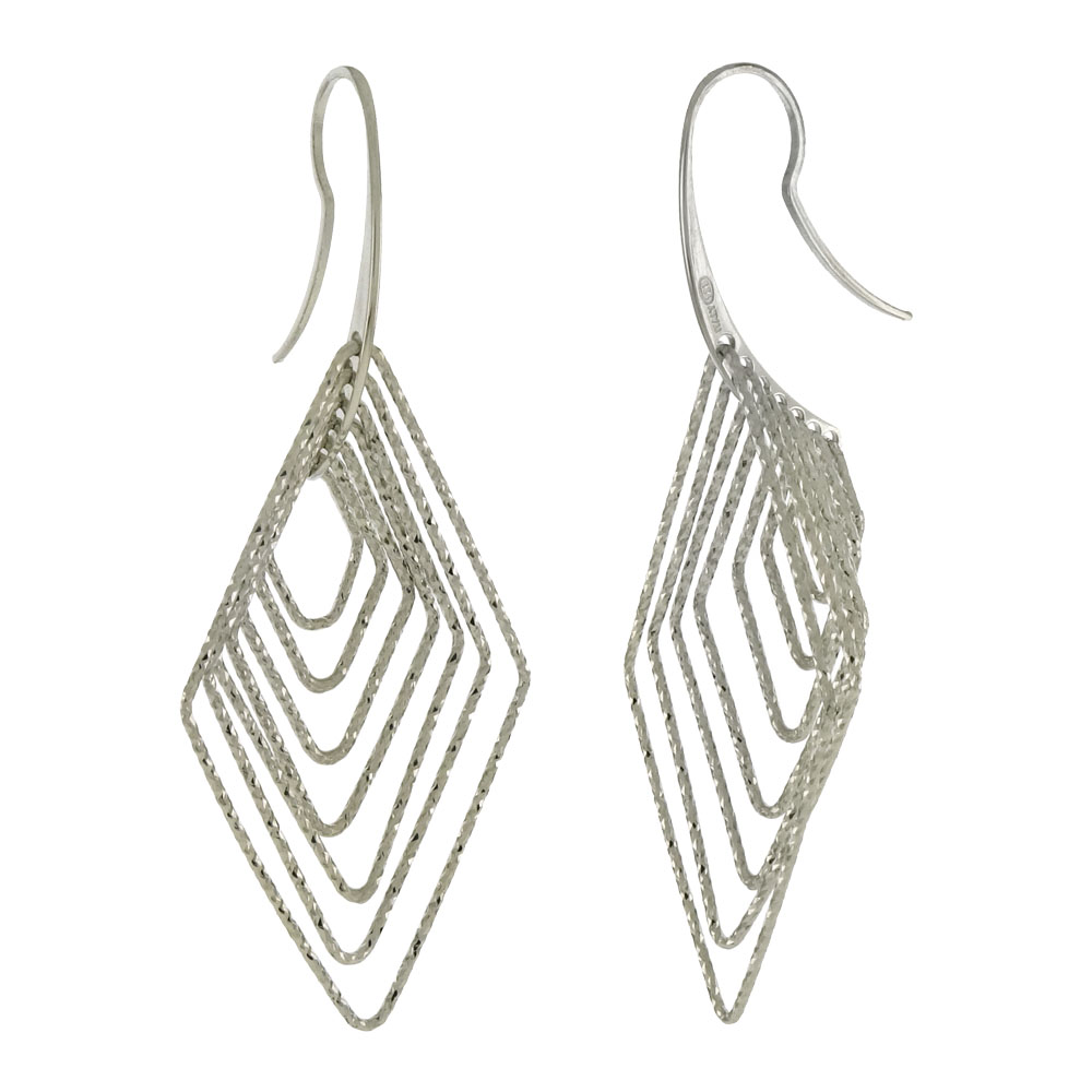 Diamond Shape 3D Italian Sterling Silver Rhodium earrings