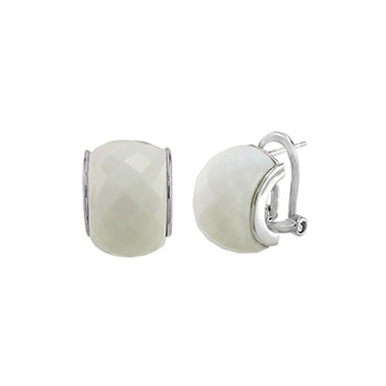 Sterling Silver White Agate Rhodium Earrings W. Post-Clip |